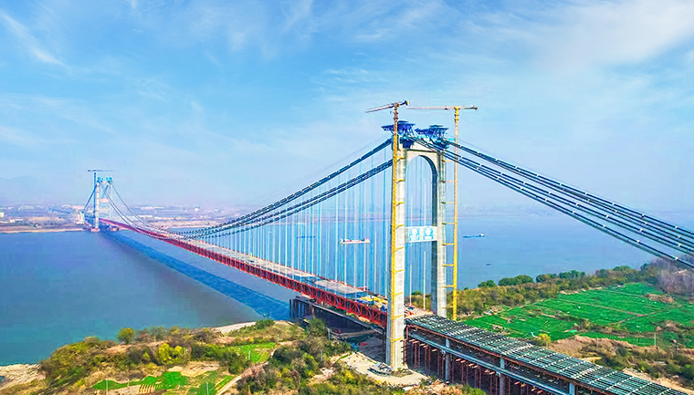 鄂州长江大桥横跨鄂州、黄冈两地,采用一跨过江的方式,是世界最大跨径四主缆悬索桥。项目全长约26千米,大桥主跨1860米,上层为六车道高速公路,设计时速100公里,下层为四车道城市快速路,设计时速80公里,是一座集高等级公路与城市快速路于一体的多功能、复合型过江通道。