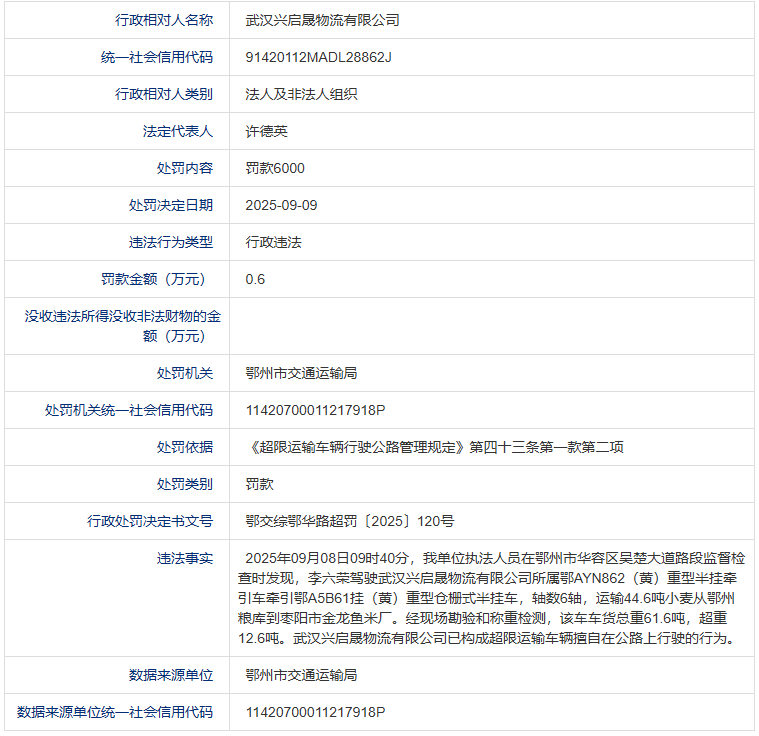 信息来源:信用中国(鄂州)