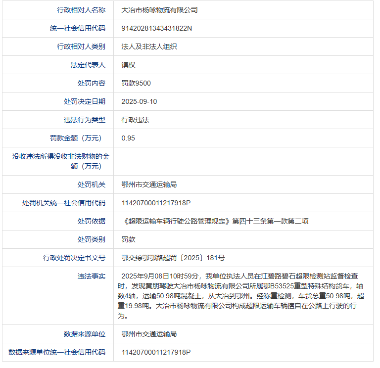 大冶市杨咏物流有限公司