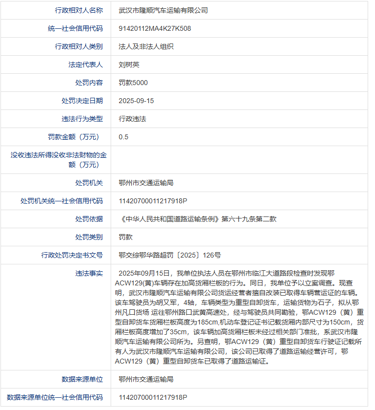 信息来源:信用中国(鄂州)
