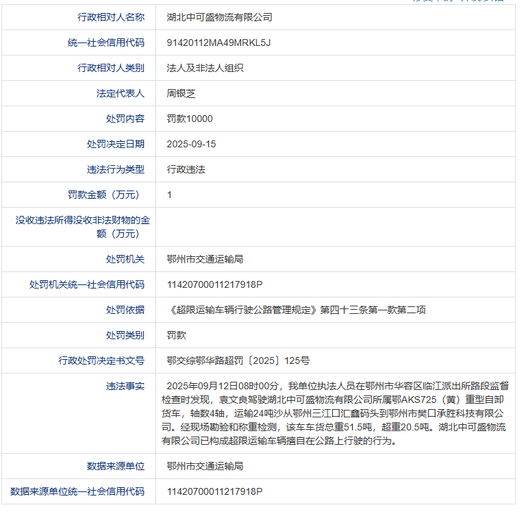 信息来源:信用中国(鄂州)