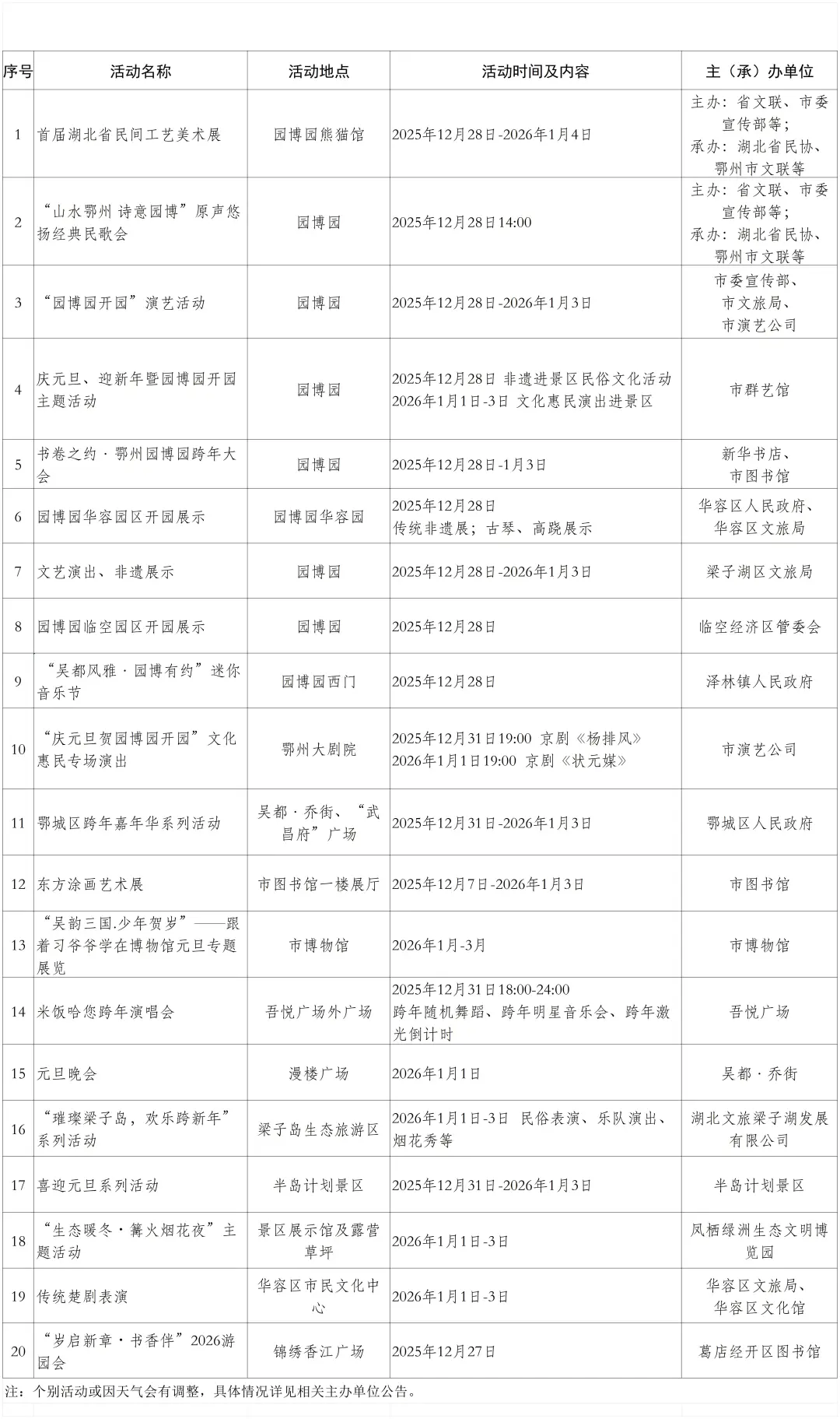 鄂州市2026年元旦期间重要文化活动安排