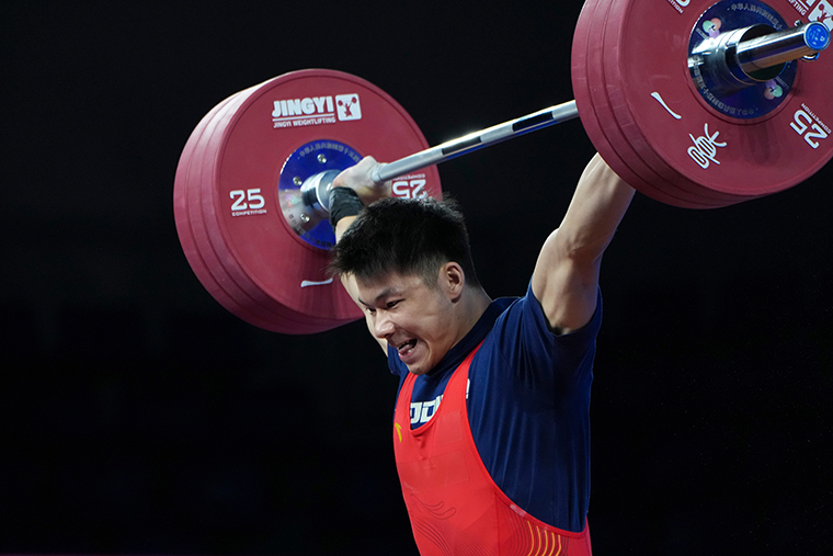 11月18日,湖北队选手涂艺在抓举比赛中。最终,他获得冠军。