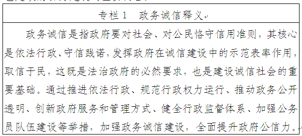 政务诚信是社会信用体系建设的关键,各类政务行为主体的诚信水平,对其他社会主体诚信建设发挥着重要的表率和导向作用。推进政务诚信建设,不仅是加强和创新社会管理的重要环节,也是政府自身建设的重要内容。