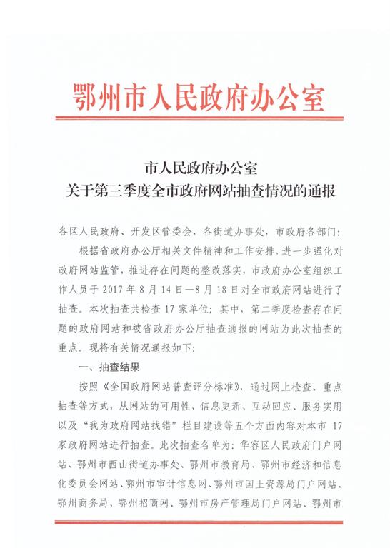 市人民政府办公室关于第三季度全市政府网站抽查情况的通报