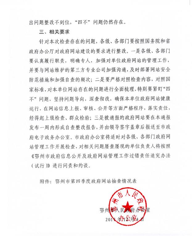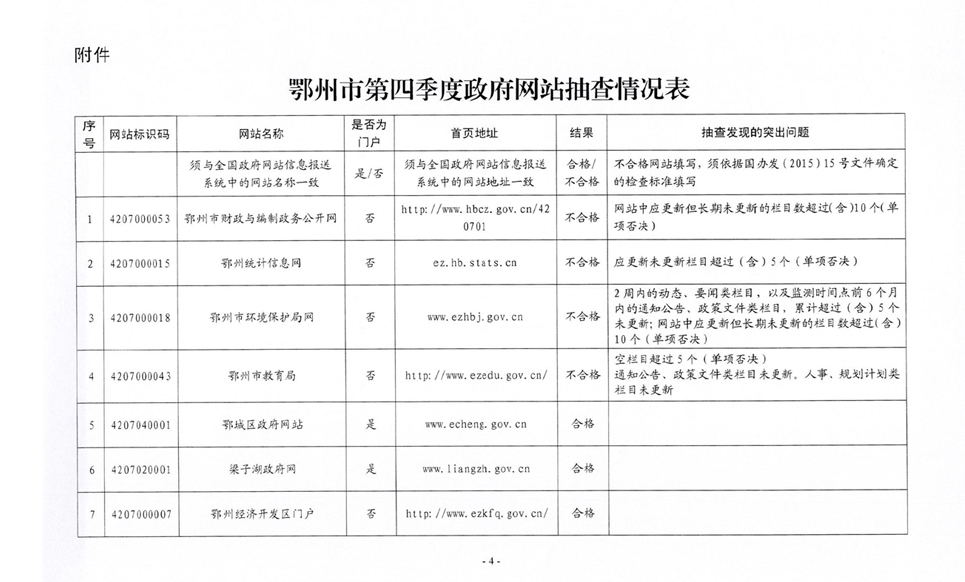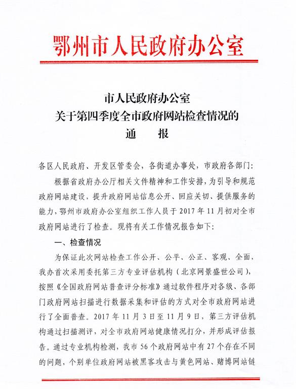 市人民政府办公室关于第四季度全市政府网站检查情况的通报