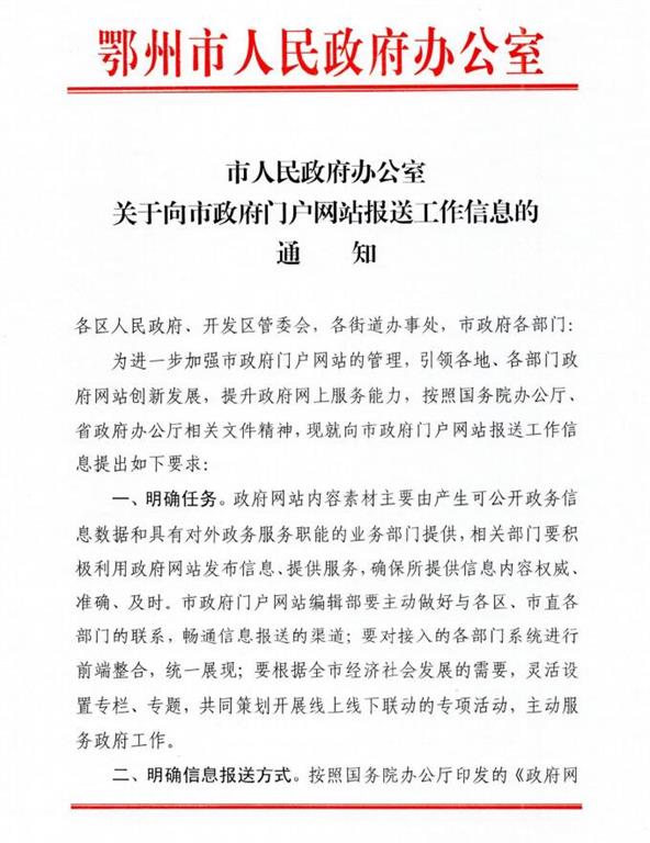 市人民政府办公室关于向市政府门户网站报送工作信息的通知