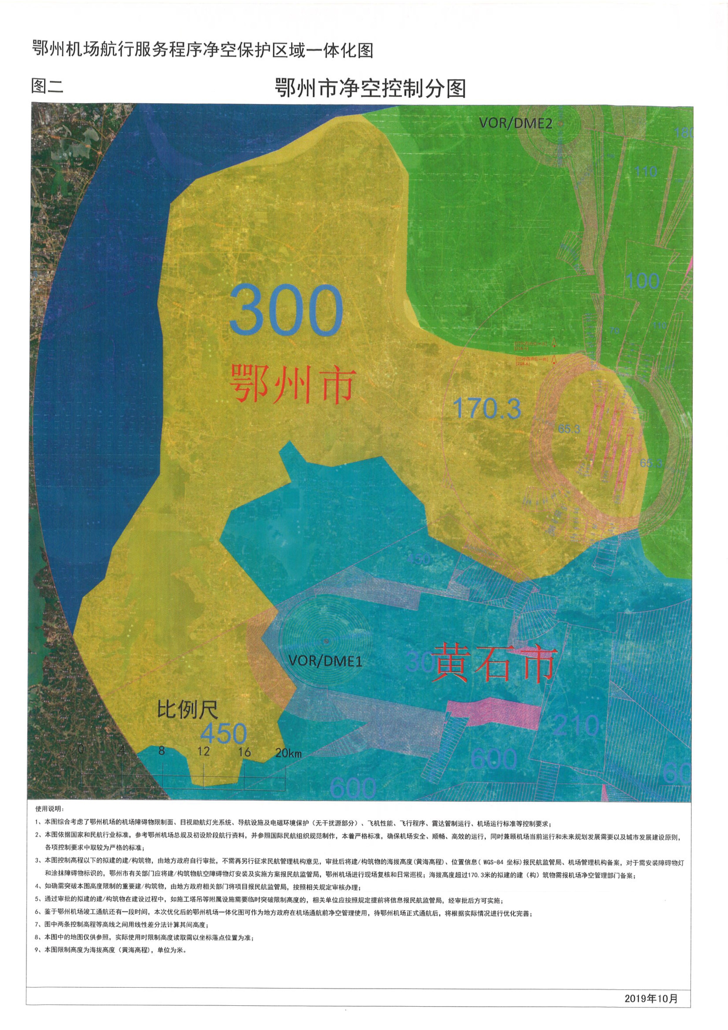 (二)图中控制范围为以鄂州民用机场基准点为圆心,半径55公里的区域;