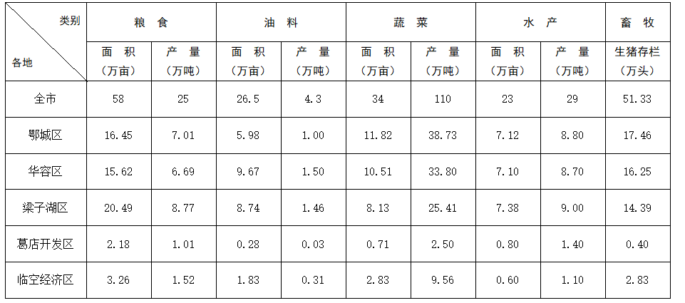 (一)种植业。全年粮食计划种植面积58万亩,产量5亿斤,春播计划面积49万亩;油料计划种植面积26.5万亩,春播计划面积4万亩;蔬菜计划种植面积34万亩,春播计划面积15万亩。