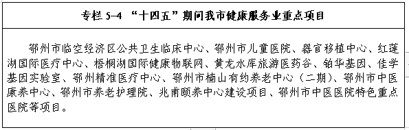 打造临空健康服务业新体系,依托葛店“中国药谷”品牌优势,重点发展精准诊疗、疾病早期发现以及易感人群的早期筛查、评估和疾病预防等。引进健康保健、血液制品、疫苗、干细胞提取生物技术、高端医学检验检测设备生产等项目,以及国际高端医疗机构,重点发展器官组织移植储备、生物医药研发、生物制剂、检验检测试剂为主的医疗健康服务业,谋划打造中部国际医学中心。积极推进智慧健康服务,升级全民健康信息平台和区域健康大数据中心,加快建设移动医疗、远程医疗等“互联网+医疗健康”服务体系,发展个性化、智慧化的远程健康管理和移动健康服务。加快开发全方位远程医疗服务平台和终端设备,研发数字医疗系统,研制保健康复产品。大力发展健康咨询服务业,围绕健康信息管理、健康体检、健康干预、慢性病管理等健康咨询服务,构建个性化健康管理服务体系。推进医疗服务下基层,全面推广家庭医生签约服务,引导妇幼健康检测、母婴照料、疾病康复等机构科学发展,满足全生命周期健康管理需要。