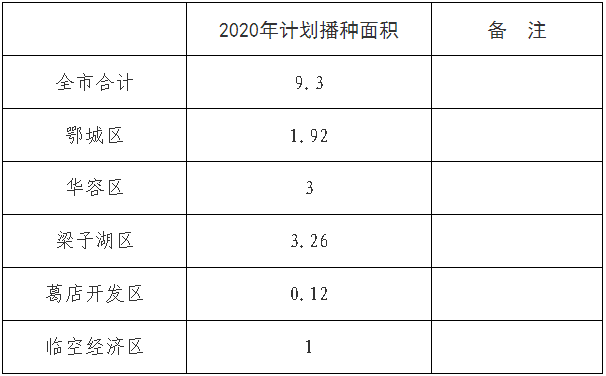一、扩大播种面积。根据《省人民政府办公厅关于做好2020年小麦秋冬播生产的通知》(鄂政办电〔2020〕45号)要求,我市2020年小麦计划播种面积由夏收统计定案面积7.4万亩扩大到9.3万亩。各区要高度重视今年小麦秋冬播生产工作,坚决把粮食安全行政首长责任制落到实处,要把稳定和扩大小麦播种面积作为今年秋冬种工作的首要任务,采取有力措施,层层压紧压实工作责任,将播种面积分解落实到乡镇和村,小麦播种面积要在上年基础上实现只增不减,要集中精力,集中力量,全力以赴抓好小麦秋冬播工作,高质量完成播种任务,确保全市小麦播种面积顺利完成省政府下达的计划任务,全力保障我市粮食安全。