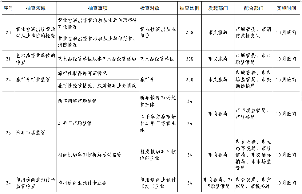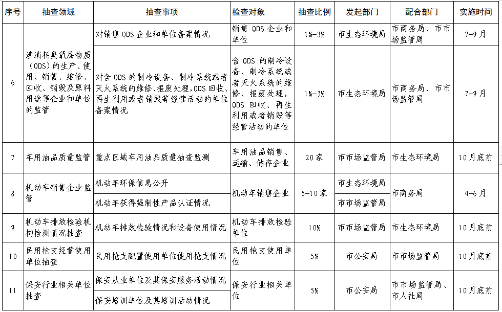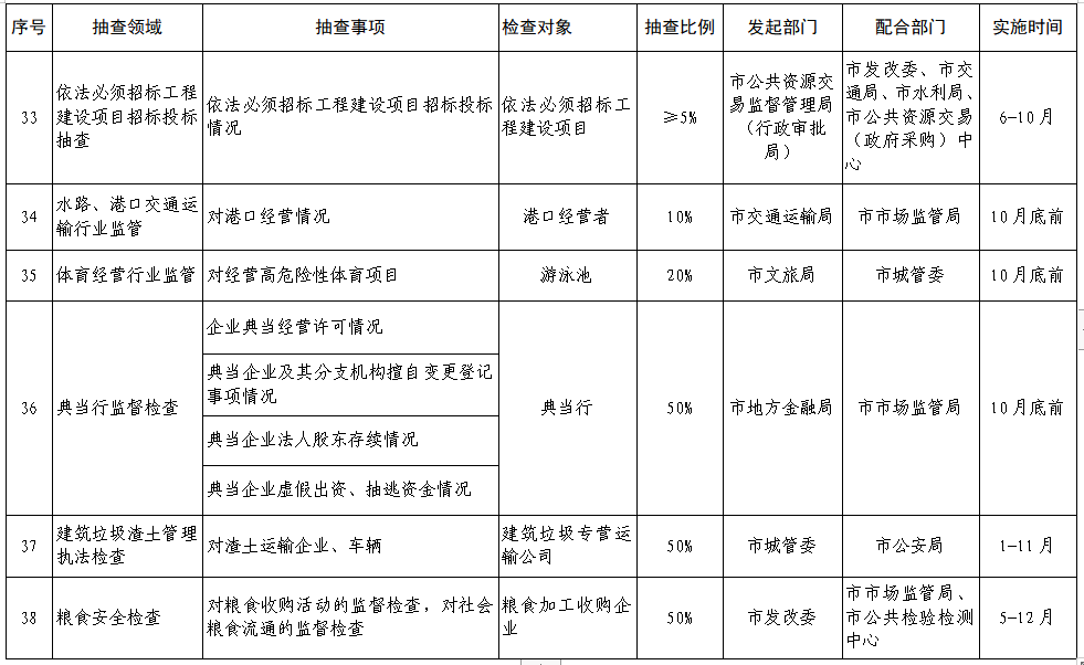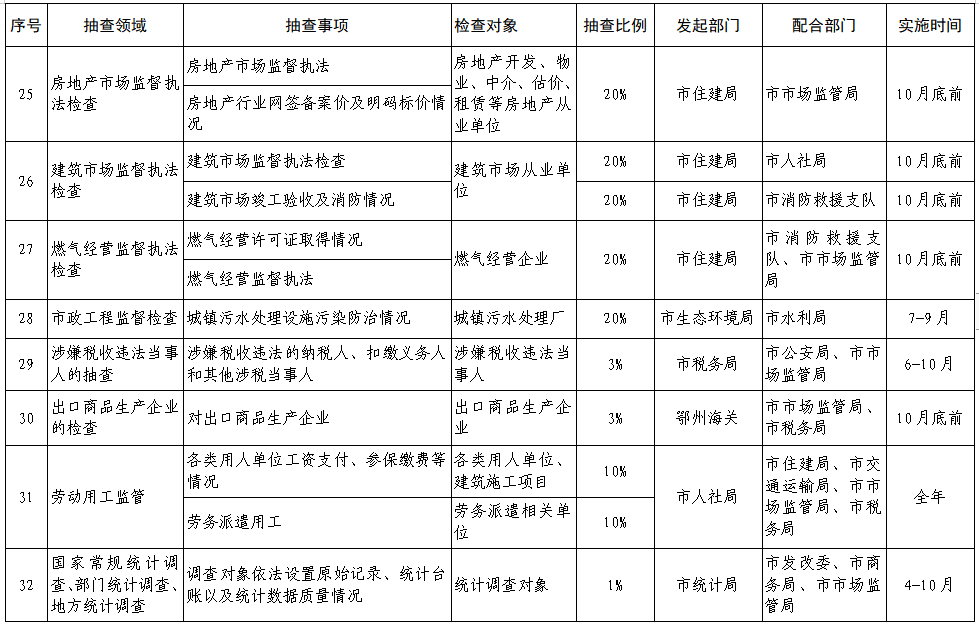 鄂州市市场监管领域2022年度部门联合双随机抽查工作计划表