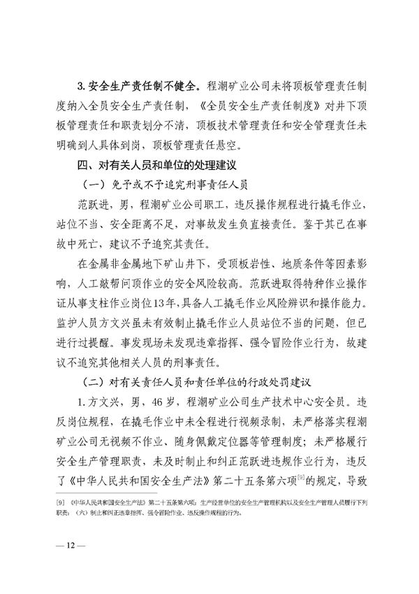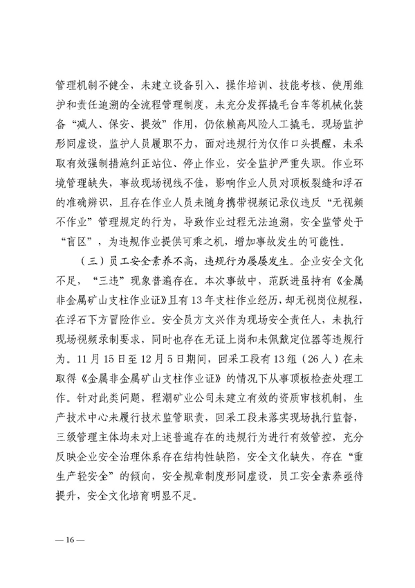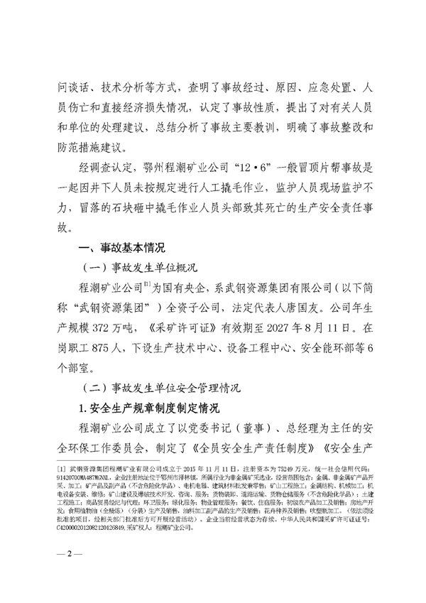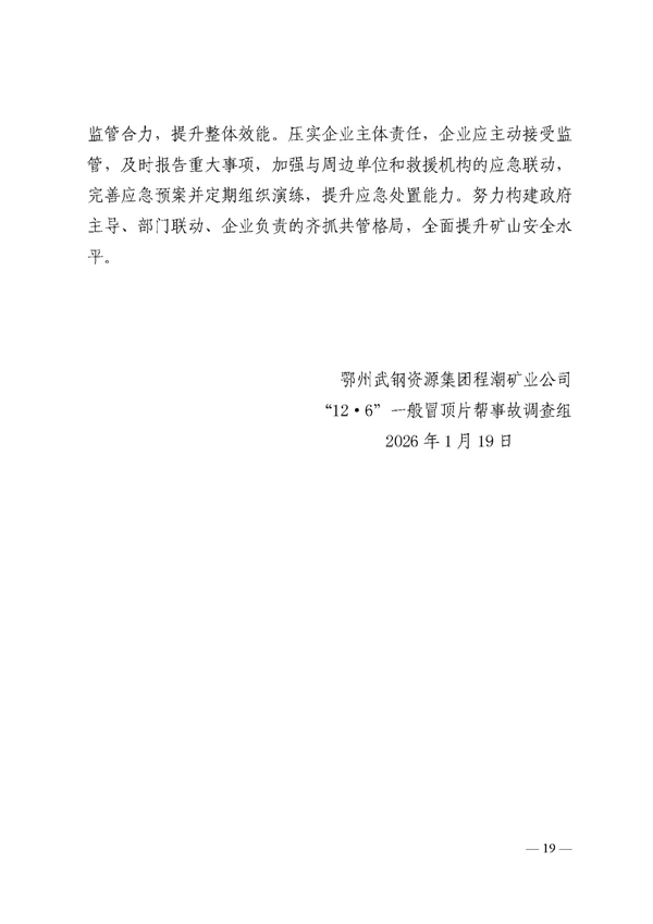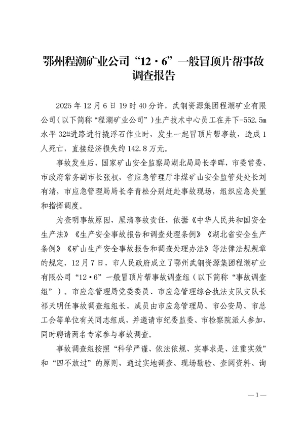 鄂州程潮矿业公司“12·6”一般冒顶片帮事故调查报告
