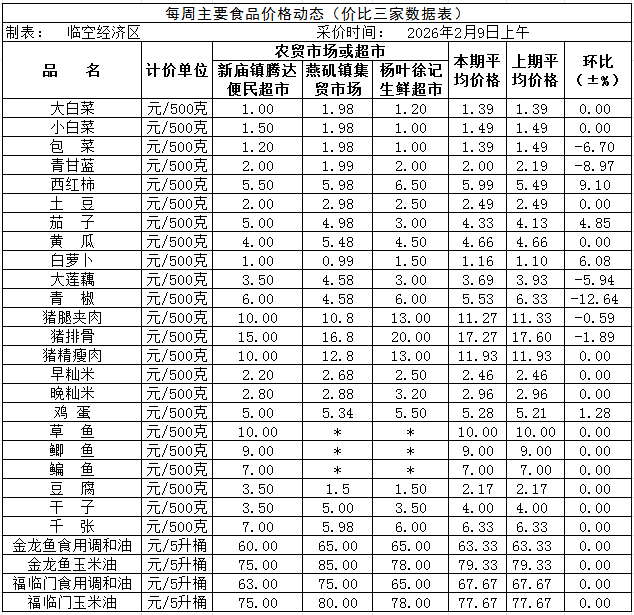 临空经济区2026年2月9日价比三家