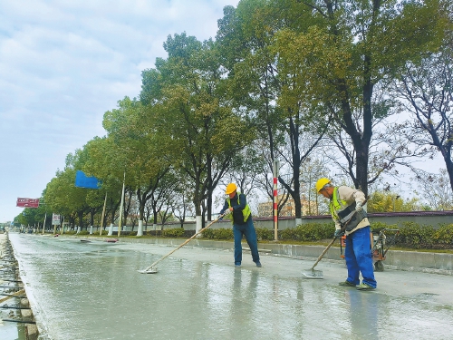 本网讯(全媒体记者金建强、杨朔)备受市民关注的江碧路改造工程正加速推进。近日,葛山大道至兴业大道段已开始开展道路基层混凝土浇筑作业。