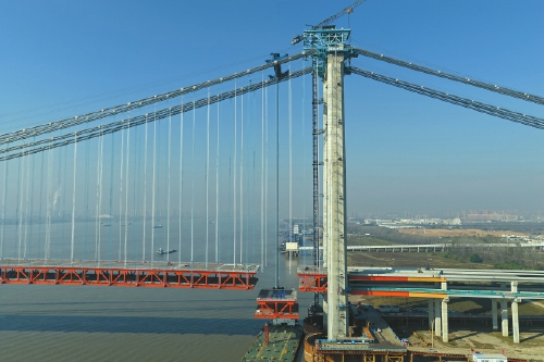 燕矶长江大桥横跨鄂州和黄冈两地,采用一跨过江的方式,是世界最大跨径的四主缆悬索桥。项目全长约26公里,大桥主跨1860米。