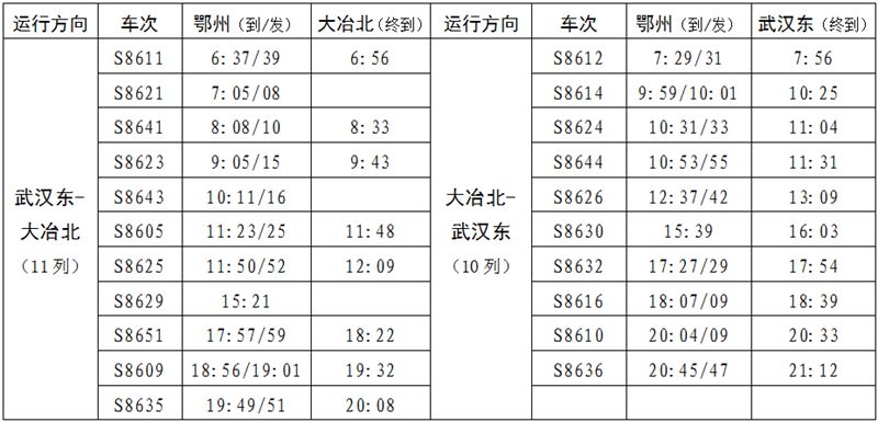 此次调整后,鄂州站日经停“新城快线”列车最高达21列,较开行之初仅5列大幅增加,与黄石北(21列)、大冶北(20列)、黄冈西(22列)相当,旅客出行面临更多选择,武鄂黄黄都市圈城际铁路公交化便捷效应将进一步凸现。此次调图有两个新特点:一是聚焦群众关切,更大程度满足市民高峰通勤需求。在武汉东站发车频次总体提升的情况下,通勤高峰时段(6:30-7:50及17:00-19:00)经停鄂州站车次有6列,8-17时有11列。二是增开19-22时车次,方便市民晚间出行。经停鄂州站车次有4列。
