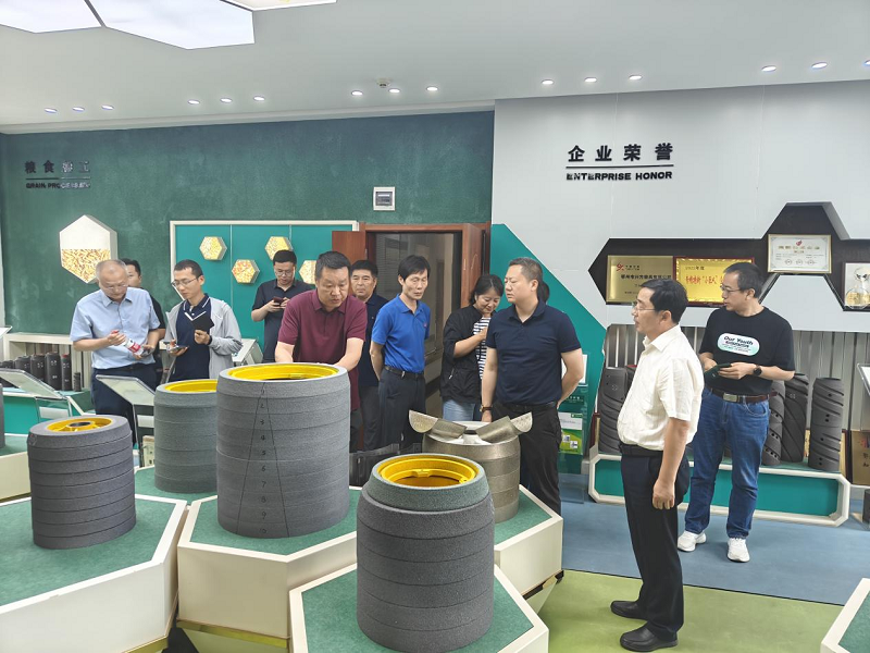 调研组一行先后到鄂州市兴方磨具有限公司、中机星粮食机械股份有限公司走访调研。通过听取情况介绍、现场观摩、查阅资料、座谈交流等形式,调研了解粮机科技应用,粮机生产制造工艺、碾米机智能化、低温升碾米机中“低温升”技术应用,粮食揭榜制项目实施等情况。