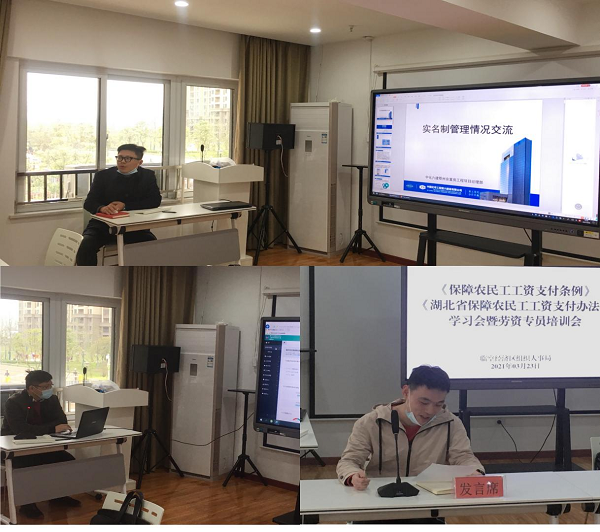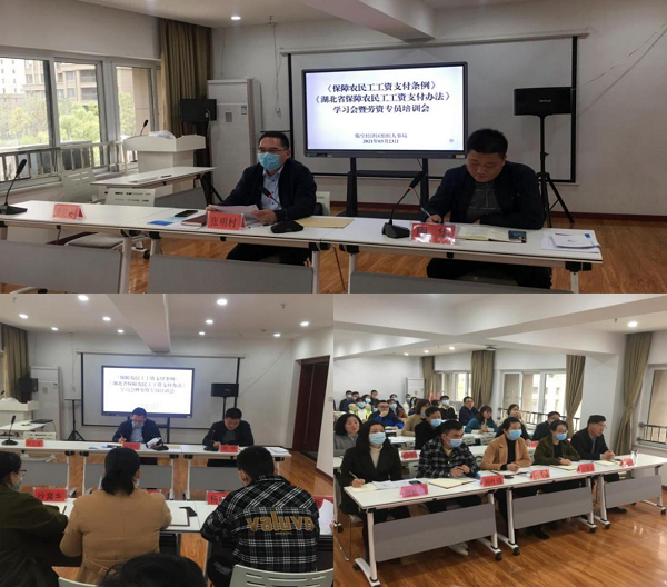 本网讯(通讯员 周华 余丹)为深入贯彻落实《保障农民工工资支付条例》(以下简称《条例》)《湖北省保障农民工工资支付办法》(以下简称《办法》),切实解决拖欠农民工工资问题,保障农民工合法权益,促进社会和谐稳定发展,推进根治欠薪春季专项行动的全面开展。2021年3月23日,临空经济区召开《条例》《办法》学习会暨劳资专员培训会,对全区范围内在建项目、企业进行专题培训,临空经济区组织人事局局长张明村、临空经济区城建局、各乡镇分管人社党委委员、各项目劳资专员参加了会议,会议由临空经济区组织人事局劳动监察大队周华同志主持。