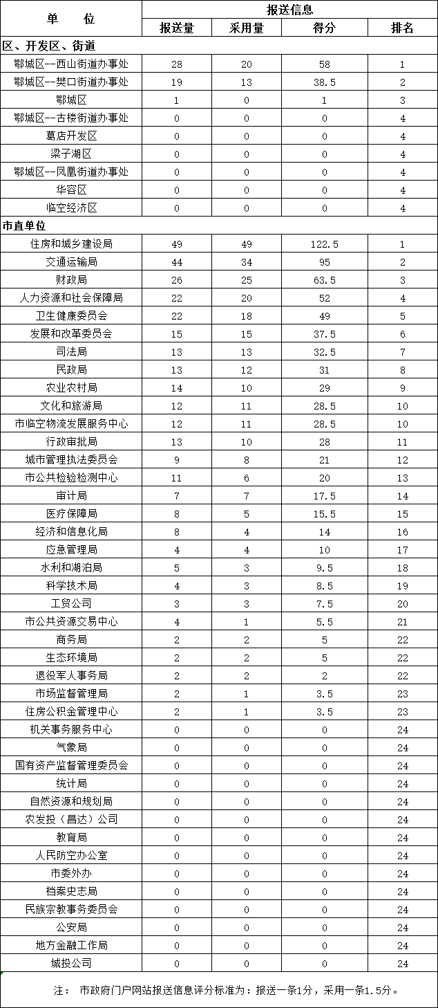 2021年05月区街、市直部门向政府网报送信息情况