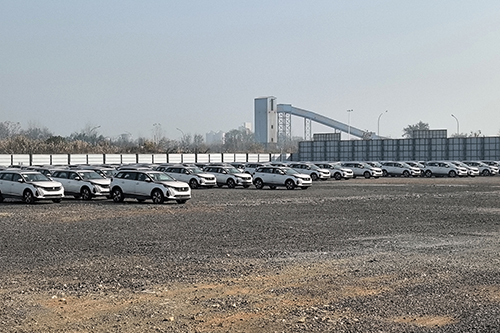 本网讯(全媒体记者张兮)12月11日,记者在华中商品车供应链基地看到,200余辆崭新汽车整齐停放。