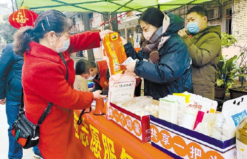 2月26日,凤凰街道江城社区“共享义仓“邻里互助公益活动在油厂小区举行。小区居民纷纷捐出米、油,志愿者们将这些爱心物资及时送给小区困难家庭。社区“共享义仓”活动将每月举行一次,在帮助辖区困难群众的同时,拉近邻里关系,营造社区和谐一家亲的氛围。记者 王奕晨 摄