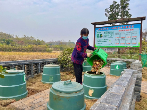 1月19日,在东沟镇茅圻村堆肥点,村民将分类后的厨余垃圾倒入发酵桶。该镇在各村设置垃圾分类亭和堆肥点,有效增强村民垃圾分类意识和环保意识,真正做到农村生活垃圾无害化、减量化和资源化处理。记者王奕晨摄