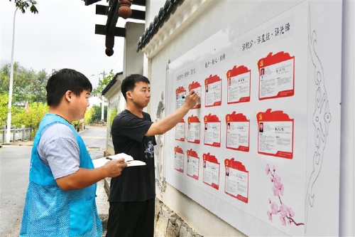 9月11日,在汀祖镇岳石洪村党群服务中心党务公示栏前,工作人员在认真填写党员积分。该村推行党员积分管理制度,以参与村务活动、志愿服务等作为积分依据,通过量化考核有效激发党员干事热情。
