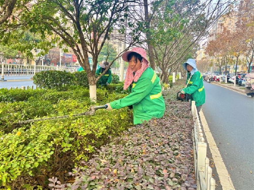 近日,市园林绿化中心抓住冬季绿化养护关键期,全面开展剪枝、除虫专项作业,按照“科学修剪、按需造型”原则,对行道树、景观灌木进行疏枝整形;采取物理防治与生物防治相结合的方式,清理虫枝、喷洒环保药剂,有效遏制病虫害繁殖,为绿植安全越冬保驾护航。图为12月11日,工作人员在寿昌大道修剪主干道绿化带绿植。