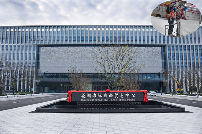 11月22日,记者探访建设中的花湖国际自由贸易中心,只见一座总建筑面积58280平方米、充满现代美感的中心大楼现出雏形。
