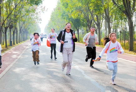 市二幼小五班的张未扬和同班同学万知言相约来到峒山参加彩虹跑,打卡乡村风光。经过约一小时的欢乐角逐与趣味闯关,200余名参赛者陆续抵达终点,一张张沾满彩色粉末的笑脸,成为现场最动人的风景。