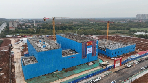 在项目建设现场,塔吊正转运木板、钢管等建筑材料;水泥罐车伸展长臂,完成一号研发综合楼屋顶混凝土浇筑作业。与此同时,三、四号厂房车间内,施工人员正进行内支撑架体搭设、模板安装以及承台与基础梁垫层施工。“一号研发楼主体结构封顶比预计工期提前完成,三号、四号厂房车间正有序推进主体结构施工,预计明年四月份,一号研发综合楼和三号生产车间可完成交付。”项目副经理刘欢介绍。