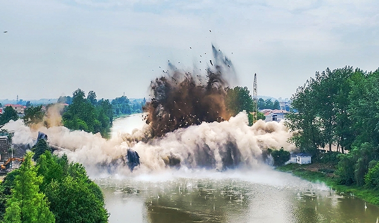 柯家墩大桥成功爆破 全媒体记者 方仲华 摄