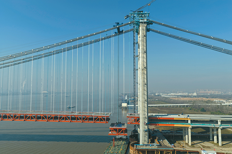 冬日暖阳下,四条主缆的燕矶长江大桥巍峨矗立,离大桥5公里远的鄂州花湖国际机场不断有航班起降。“为保障大桥顺利合龙,在省交通运输厅工程事务中心的帮助下,我们对合龙口的标高、里程和轴线不间断地进行监控与测量,精确计算温度、风力等环境因素对钢梁形变的影响,最终,钢桁梁以毫米级的精度平稳嵌入预定位置。”中交二航局燕矶长江大桥项目总工程师罗航说。