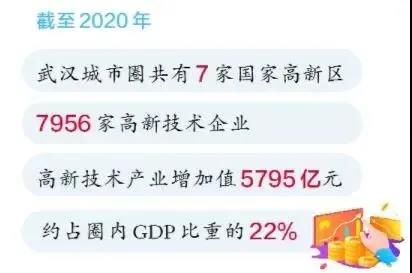 这一年,武汉城市圈技术合同成交额约为1297亿元。7家国家高新区、7956家高新技术企业,为湖北贡献了5795亿元高新技术产业增加值,约占GDP比重的22%。