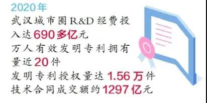 这一年,武汉城市圈拿出690多亿元,投向R&D经费(研究与试验发展经费),万人有效发明专利拥有量近20件,发明专利授权量达1.56万件,大幅领先成都都市圈、重庆市和长株潭城市群。
